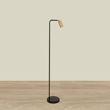 This elegant floor lamp merges luxury with functionality through its refined metal construction and striking gold and black finish.