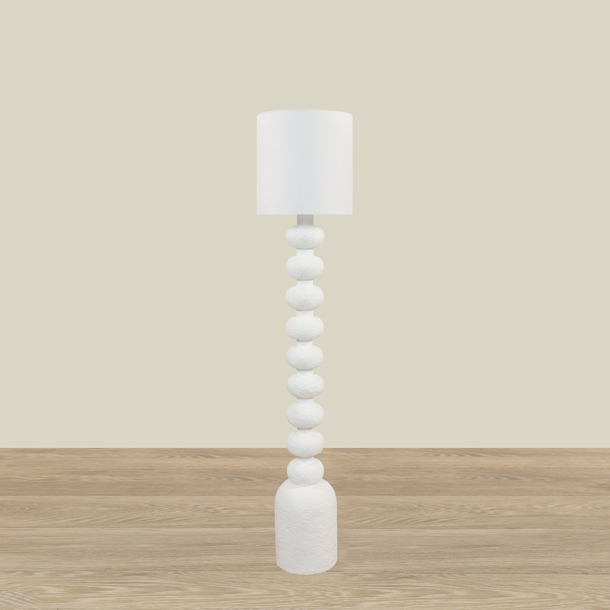 Brighten your space with this charming floor lamp, crafted from durable resin in a crisp white finish.