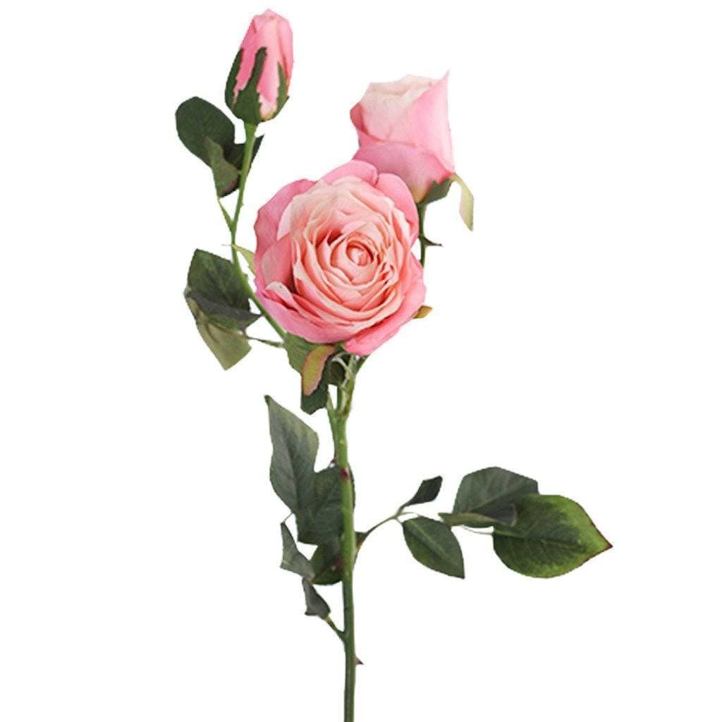 This trio of white roses per one stem features the evolution of each flower from its early opening to its full bloom. Colorful bottles, vases, and buckets are all good homes for these beautiful roses. They seem to be living but require no maintenance, water or sunlight. Enjoy them for a lifetime!
