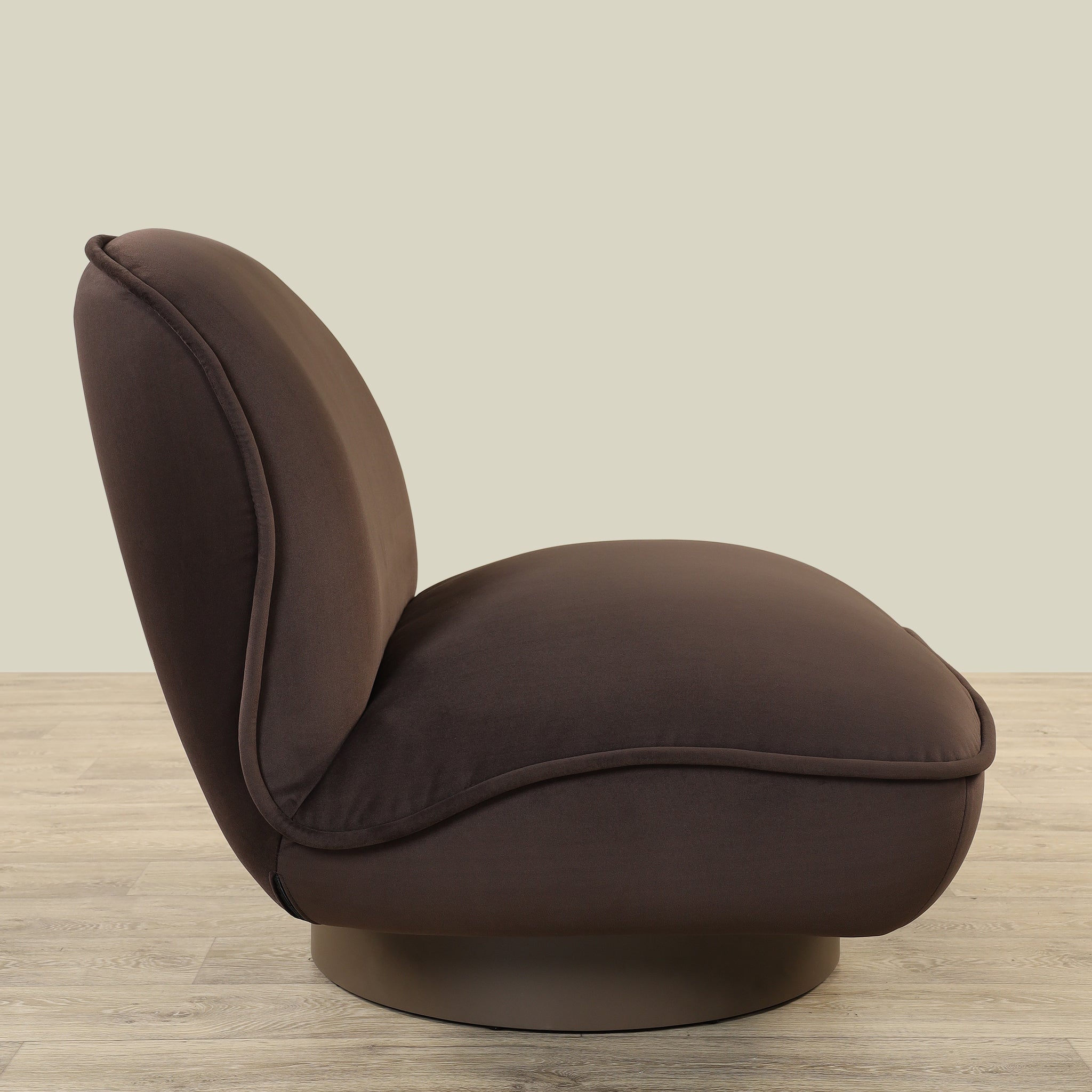 The Echo Lounge Chair combines refined fabric upholstery with a striking coffee gold base, offering both comfort and elegance.