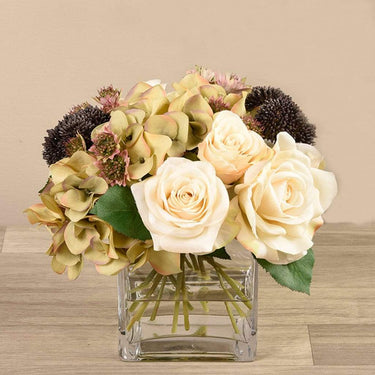 Artificial Mixed Flower Arrangement in Glass Vase