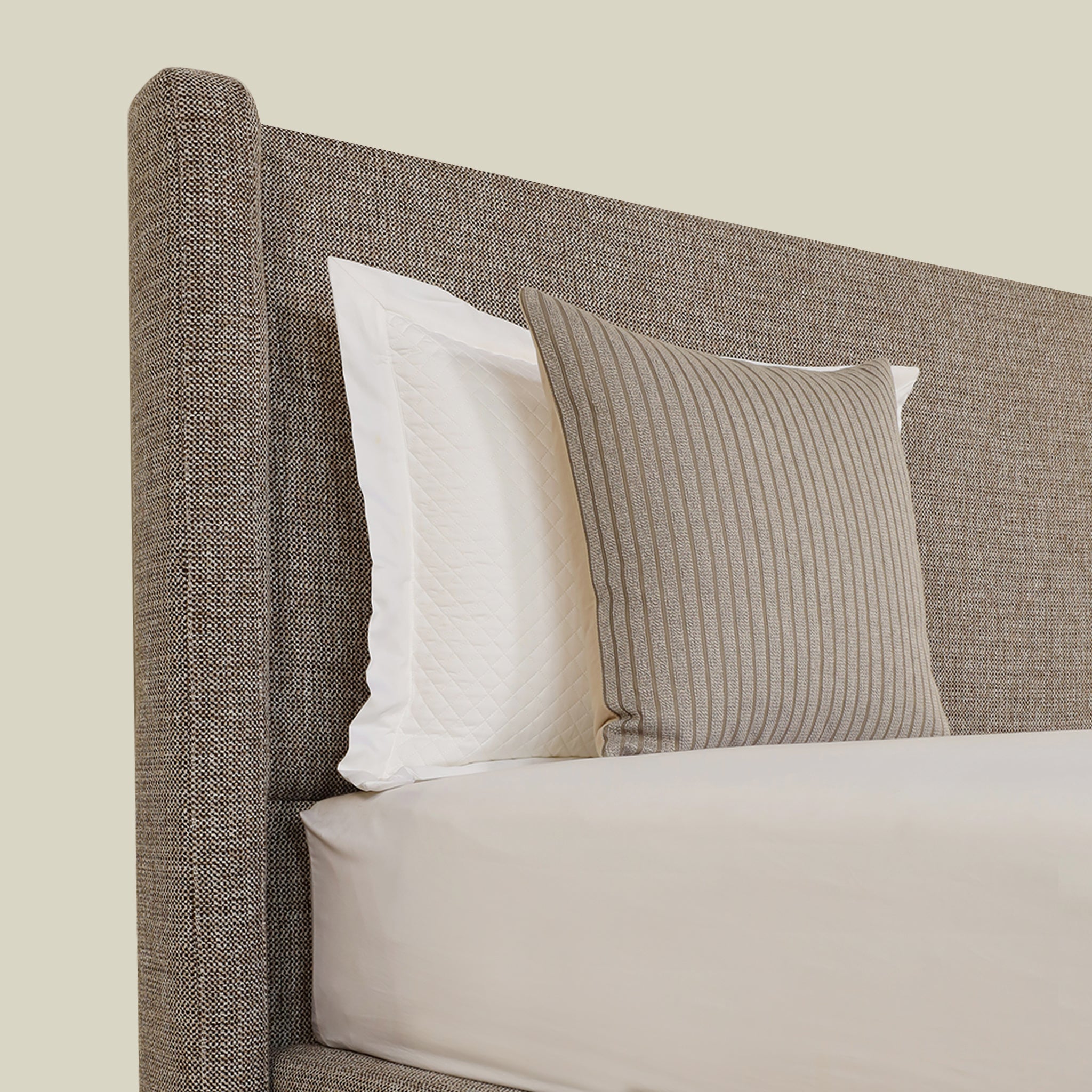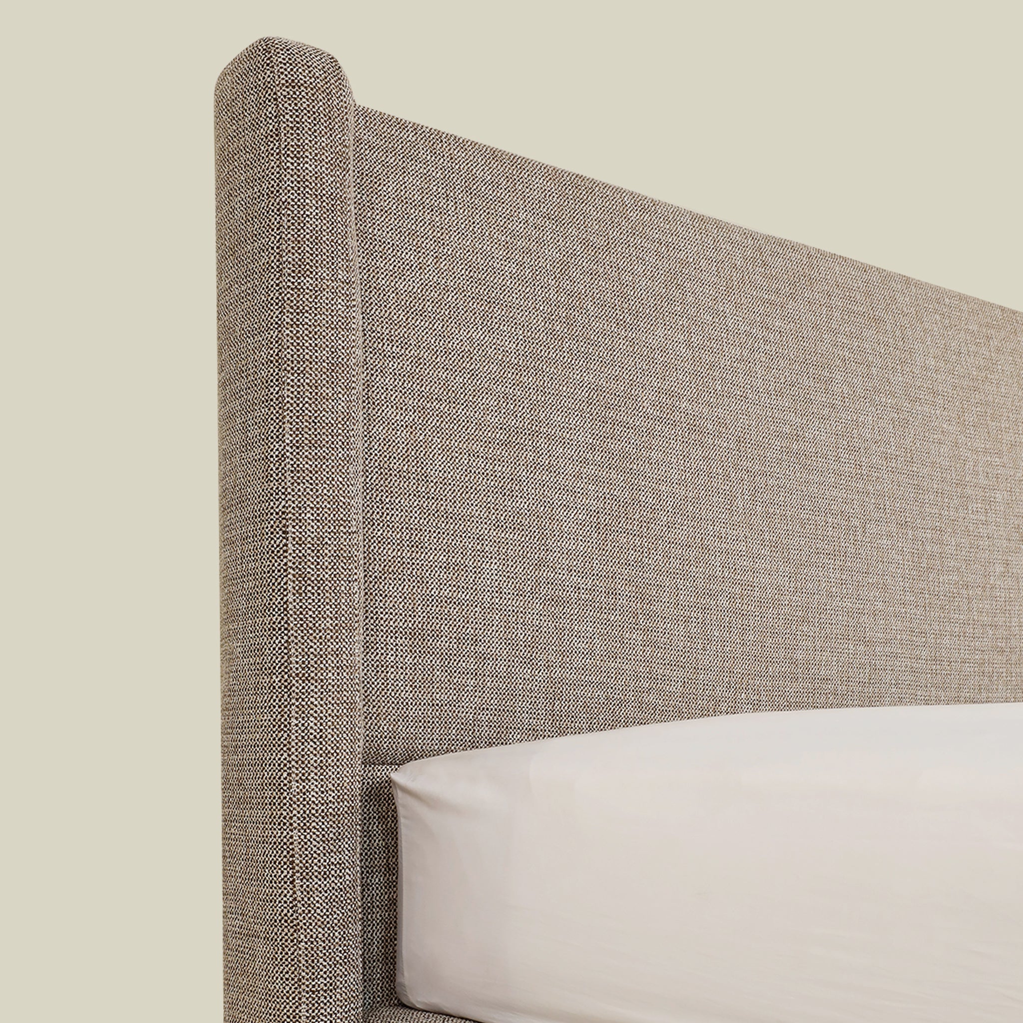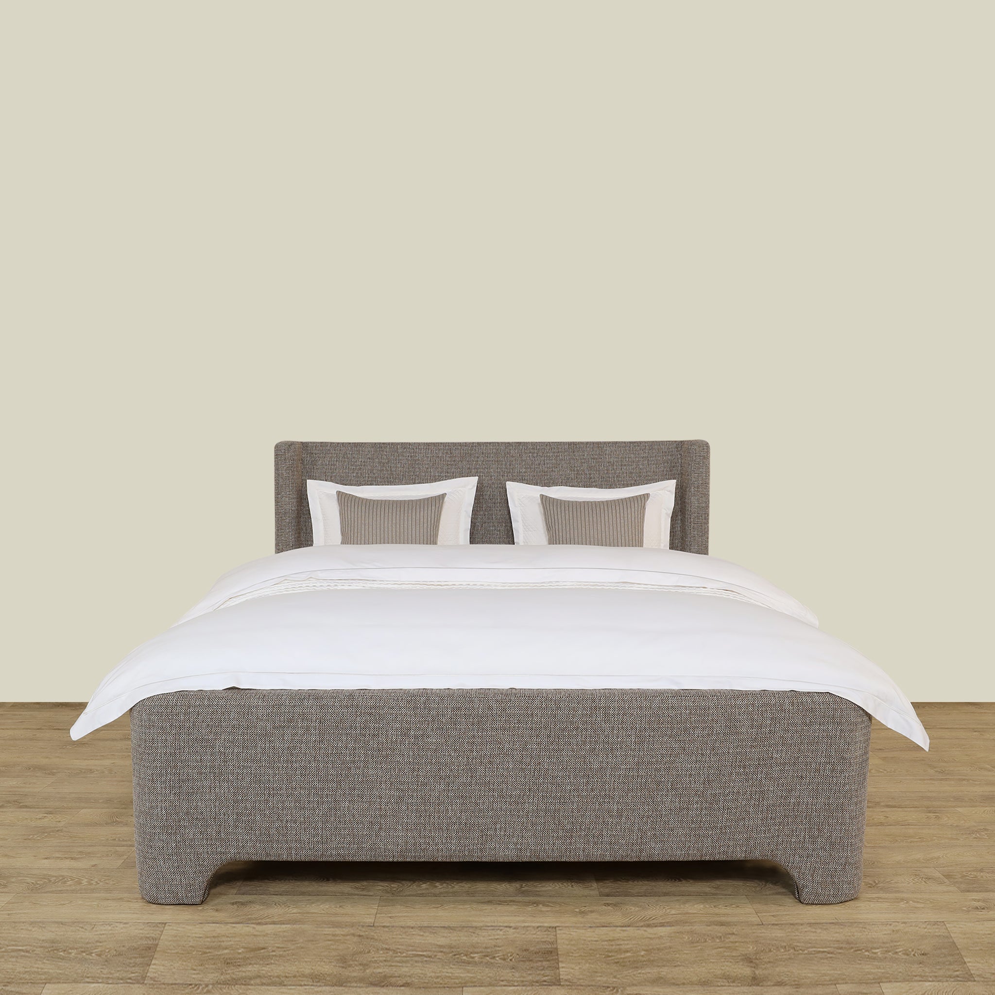 Its elegant neutral tone and refined construction make it a sophisticated centerpiece for any bedroom, offering both style and durability.