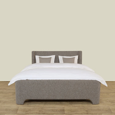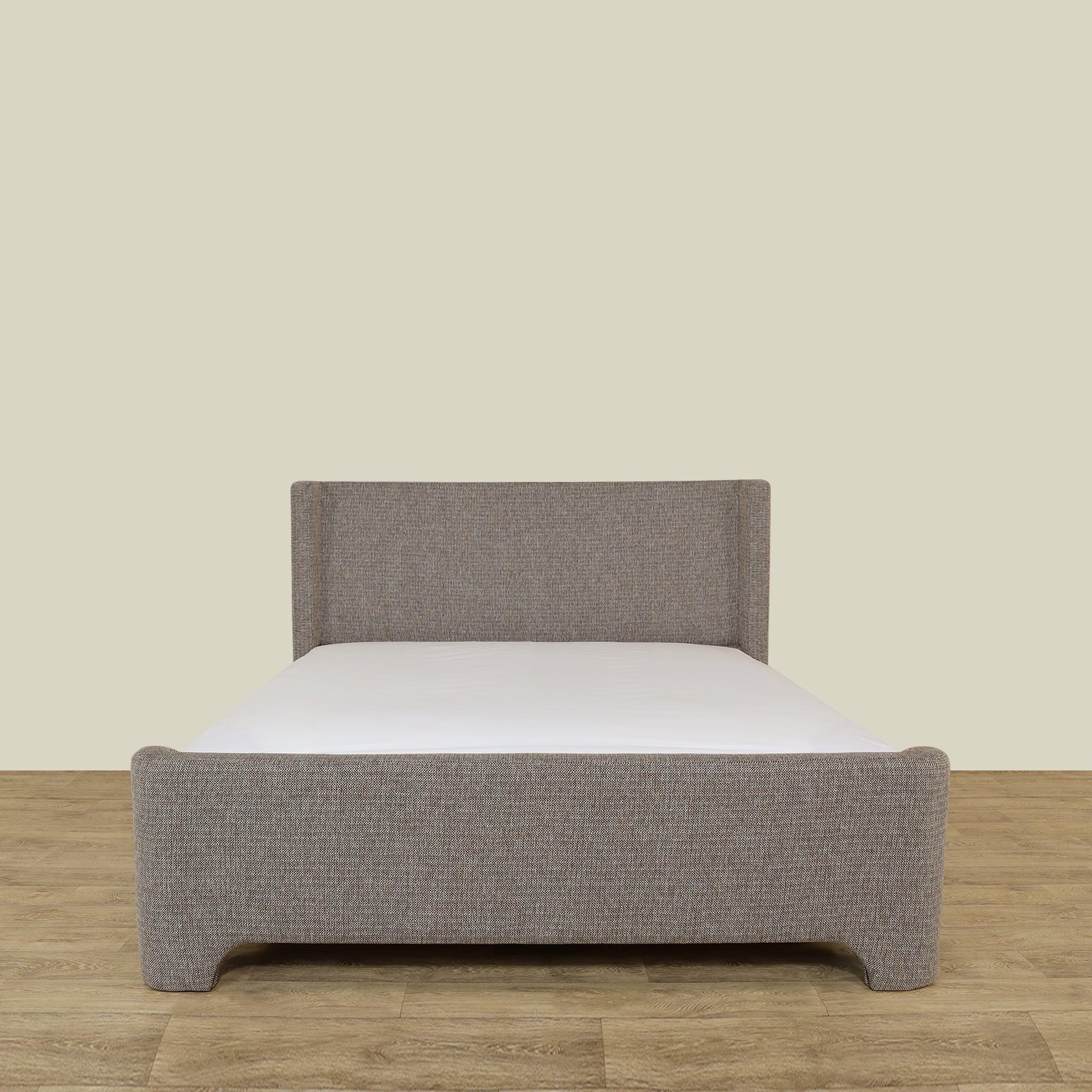 Crafted with a sturdy wood frame and upholstered in soft gray fabric, the Bed Mellow combines timeless design with lasting comfort.