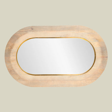Elevate your space with this elegant wooden mirror featuring a finely carved oval frame.